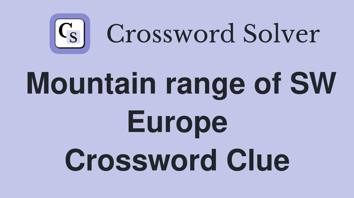 Mountain range of SW Europe Crossword Clue Answers Crossword Solver