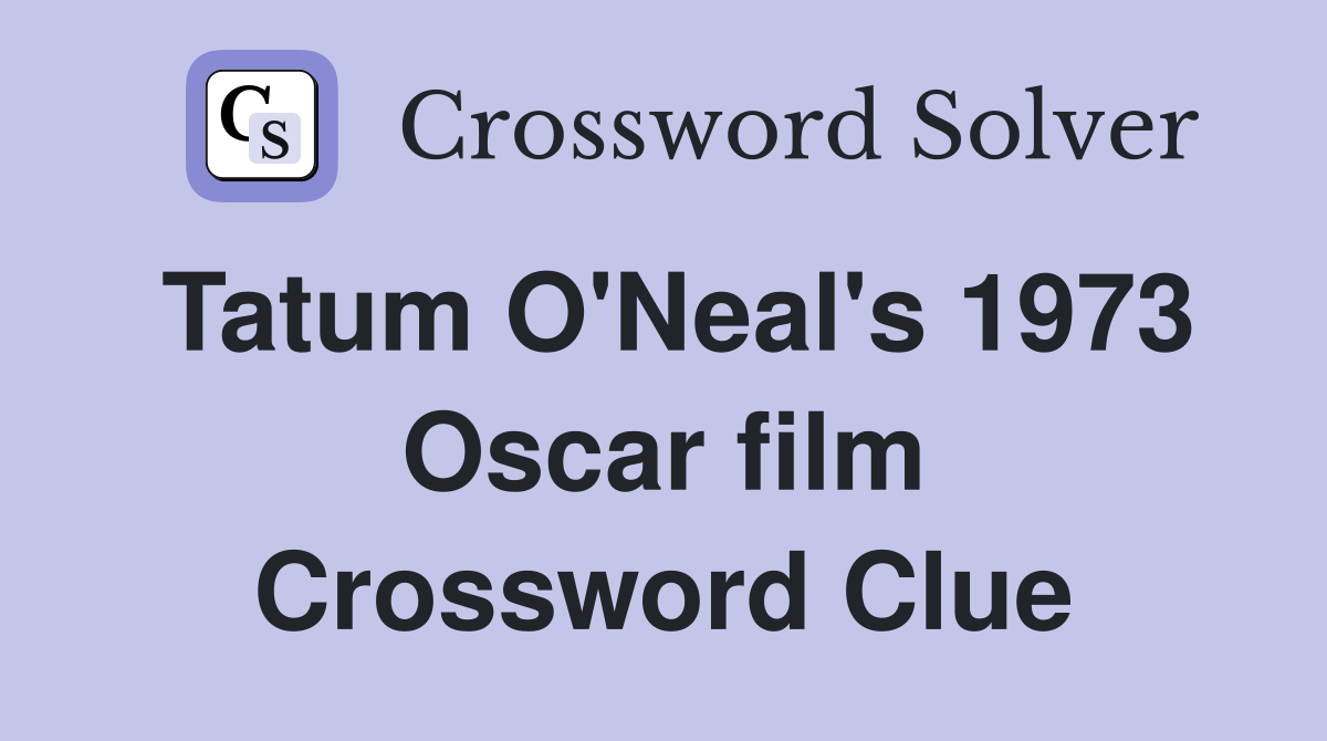 Tatum O #39 Neal #39 s 1973 Oscar film Crossword Clue Answers Crossword Solver