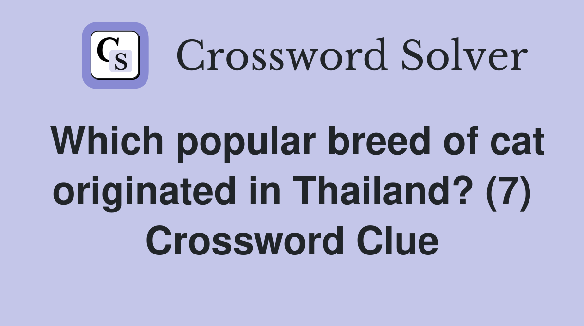 Which popular breed of cat originated in Thailand? (7) Crossword Clue