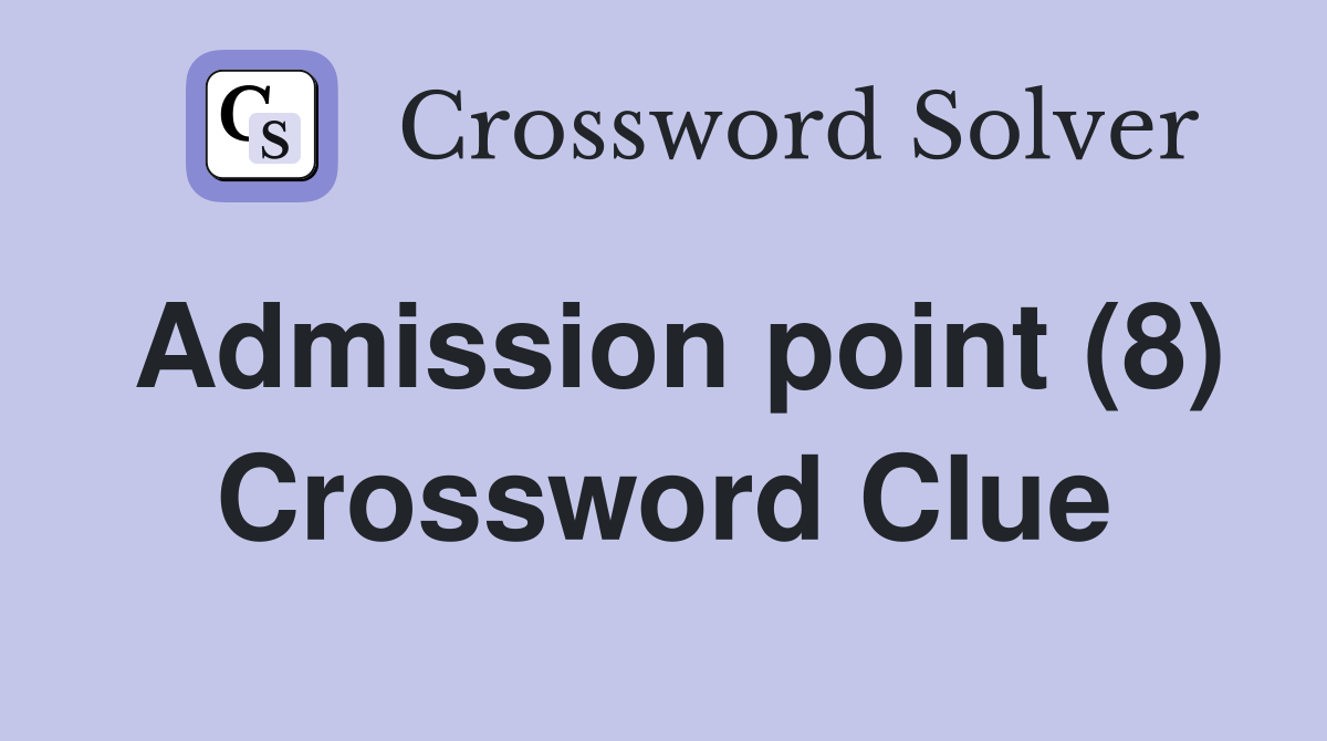Admission point (8) Crossword Clue Answers Crossword Solver