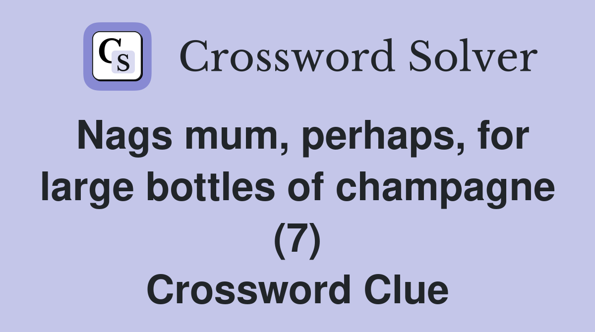 Nags mum perhaps for large bottles of champagne (7) Crossword Clue
