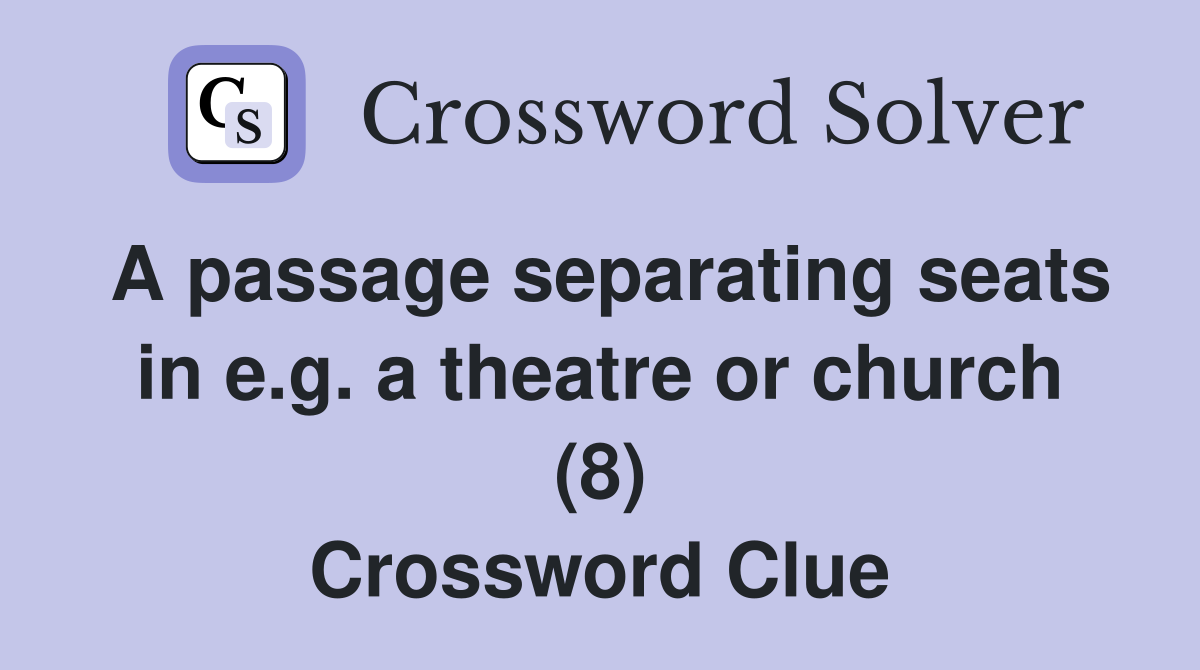 A passage separating seats in e g a theatre or church (8) Crossword