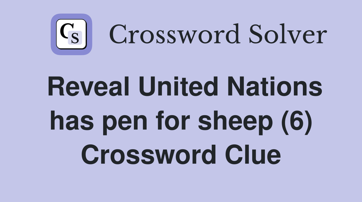 Reveal United Nations has pen for sheep (6) Crossword Clue Answers