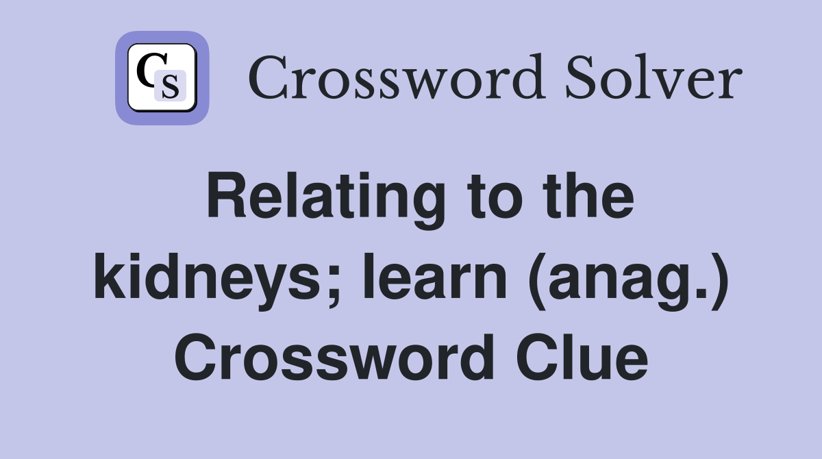 Relating to the kidneys learn (anag ) Crossword Clue Answers