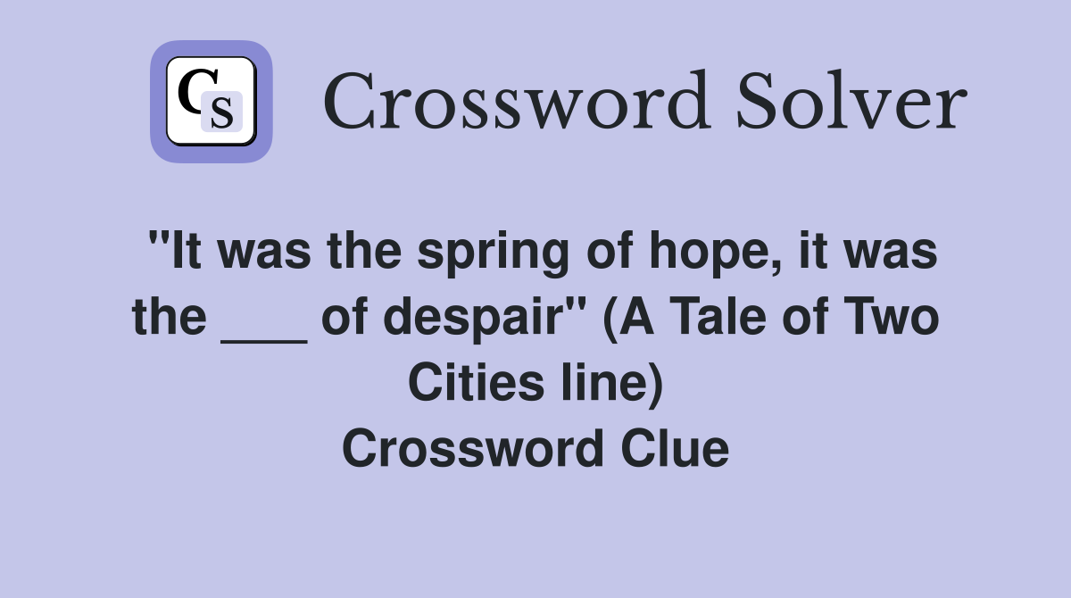 quot It was the spring of hope it was the of despair quot (A Tale of Two