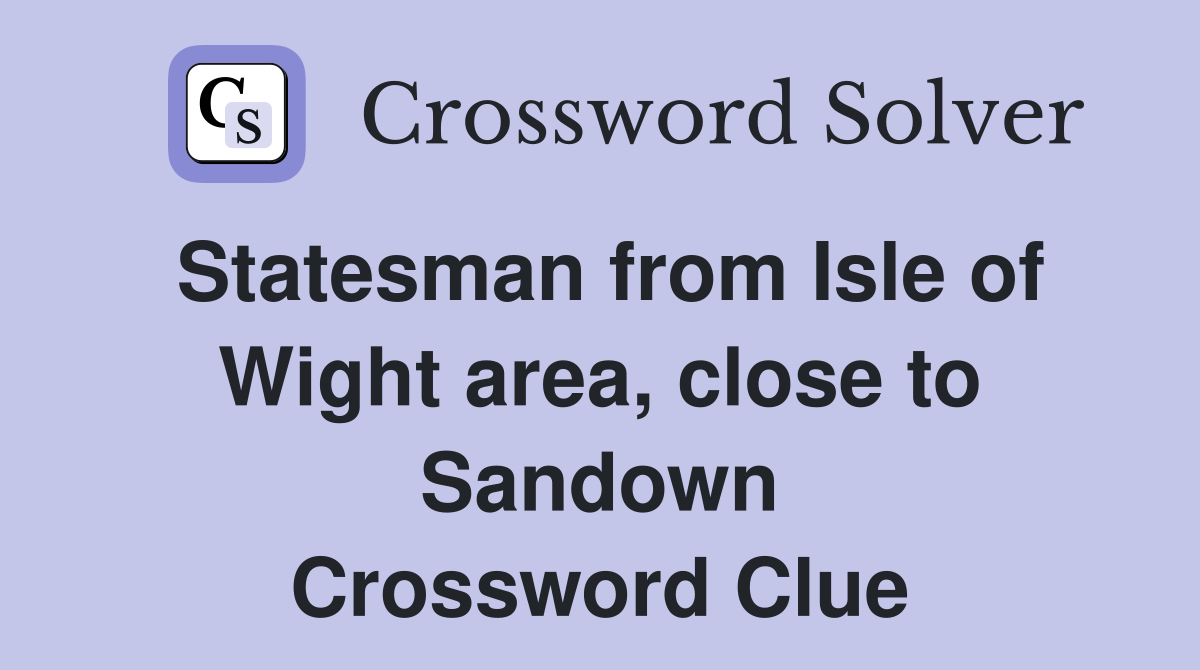 Statesman from Isle of Wight area close to Sandown Crossword Clue