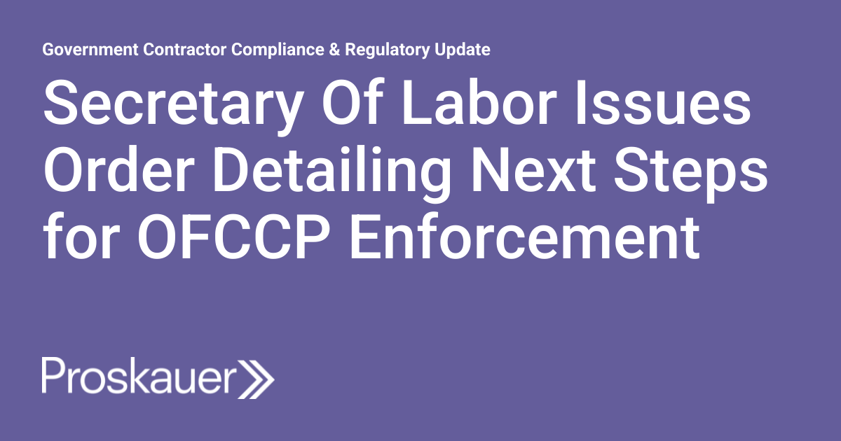 Secretary Of Labor Issues Order Detailing Next Steps for OFCCP