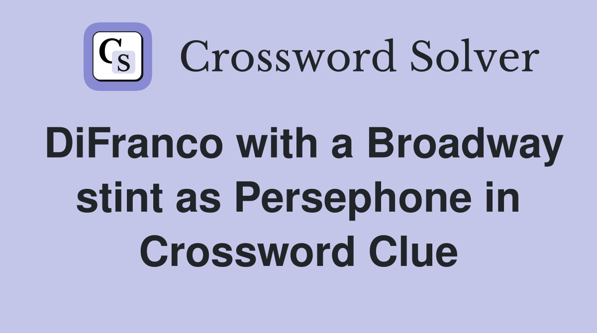 DiFranco with a Broadway stint as Persephone in Hadestown Crossword