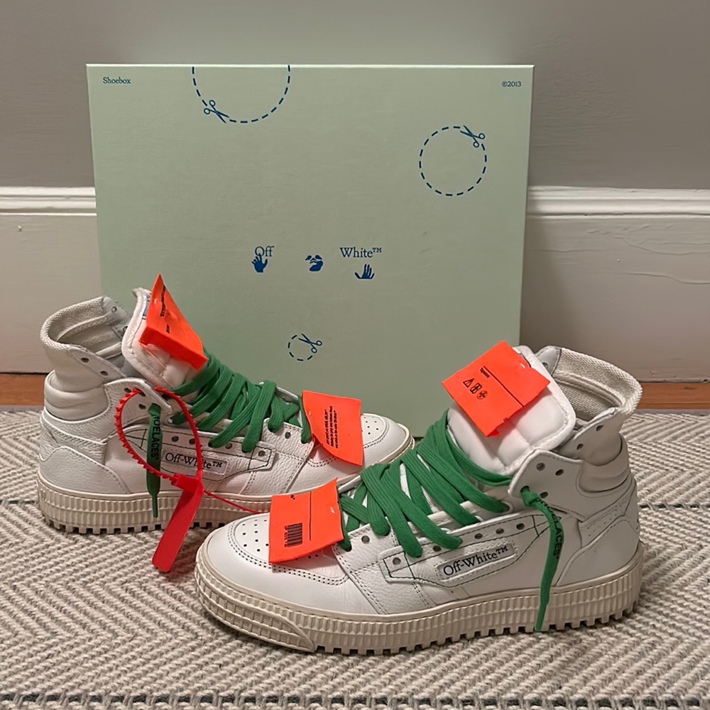 Off White Off Court 3 0 White / Green High Top Sneakers Sneak in Peace