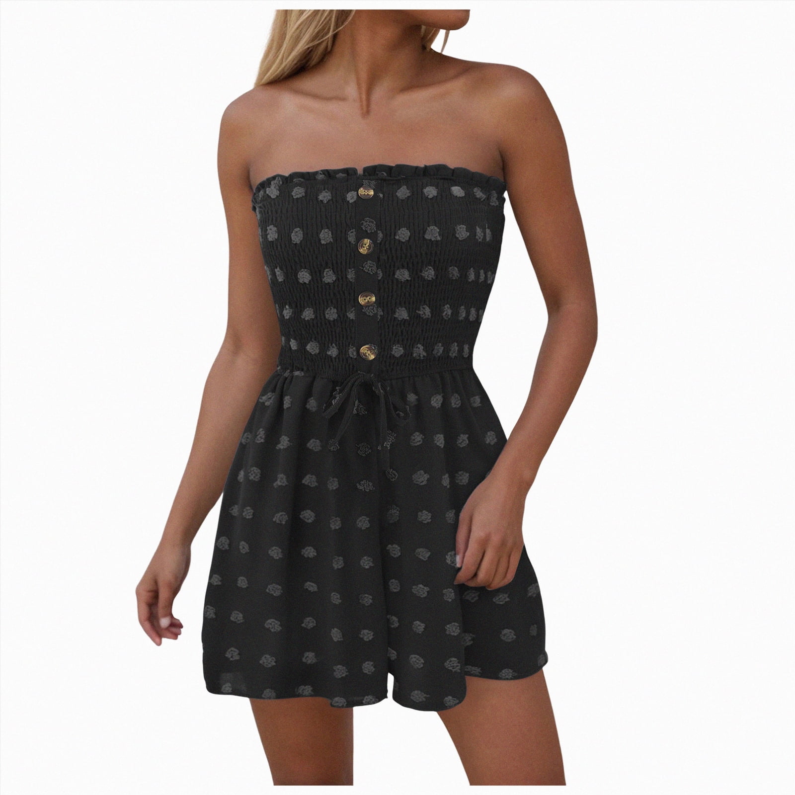 Gvdentm Womens Casual Strapless Jumpsuits off the Shoulder Summer