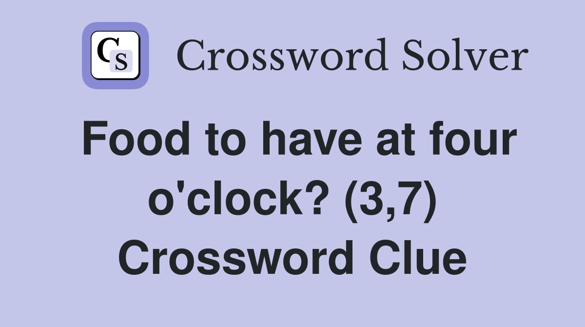 Food to have at four o #39 clock? (3 7) Crossword Clue Answers