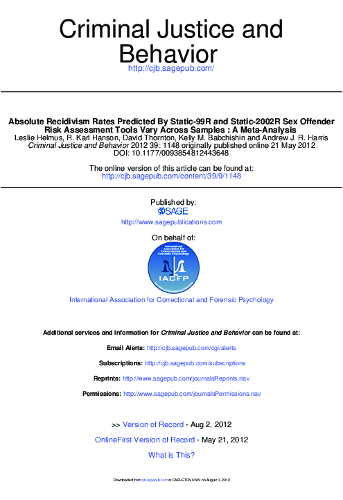(PDF) Absolute Recidivism Rates Predicted By Static 99R and Static