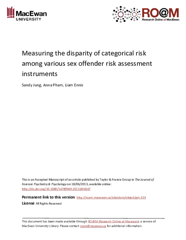 (PDF) Comparingoffender risk assessment measures on a UK sample