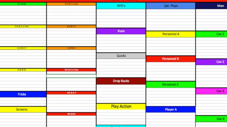 Offensive Coordinator Play Sheet Template
