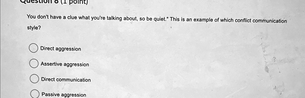 8 (1 point) You don #39 t have a clue what you #39 re talking about so be