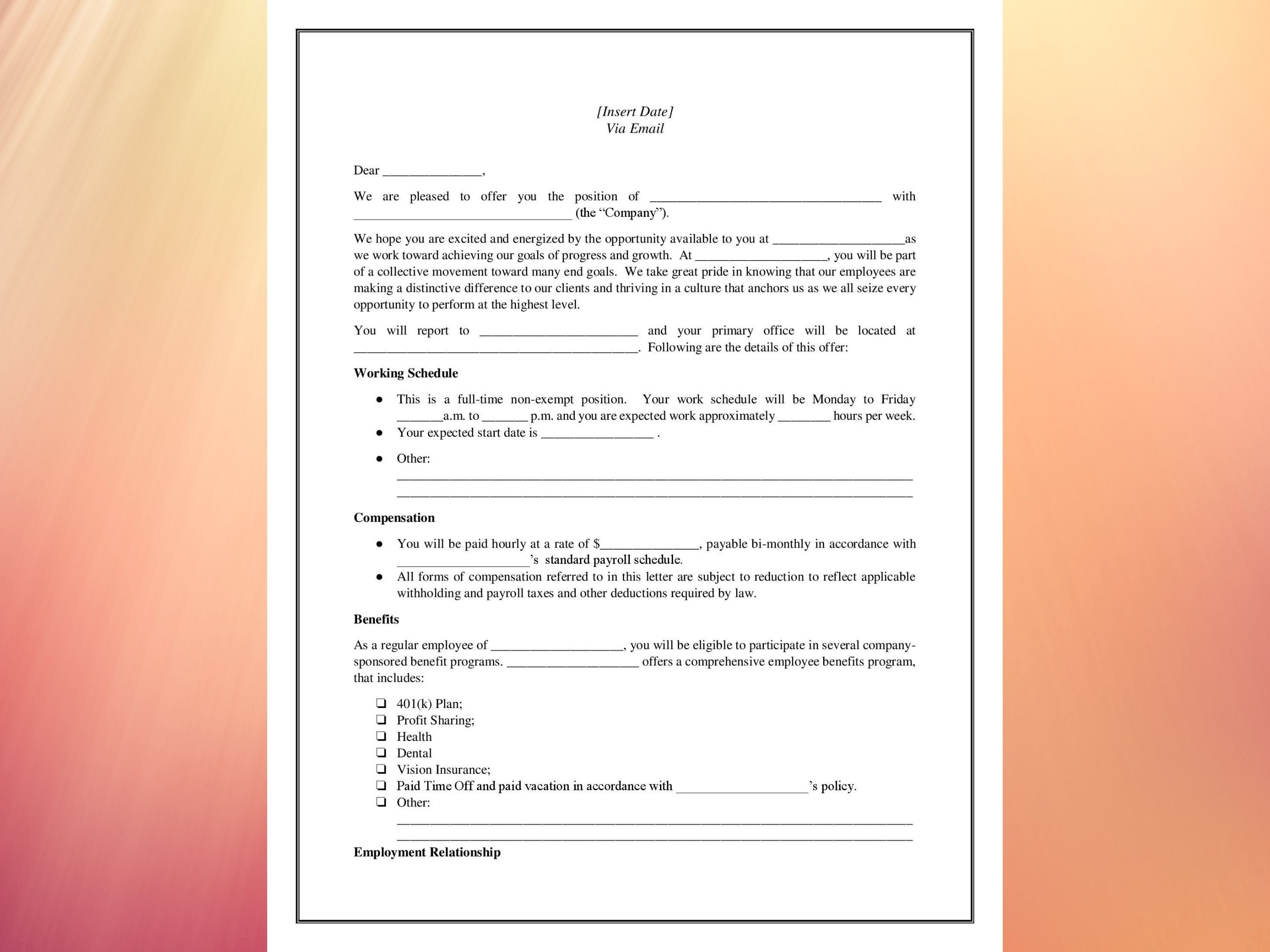 Offer Letter Template Hourly