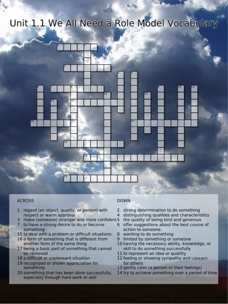 Role Model Vocabulary Crossword PDF Skill Sympathy