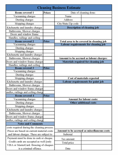 Cleaning Estimate Template Excel