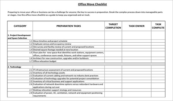 Office Move Checklist Template Excel