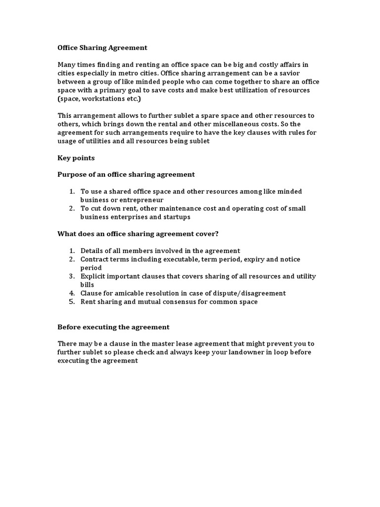 Office space sharing agreement template paintmaha