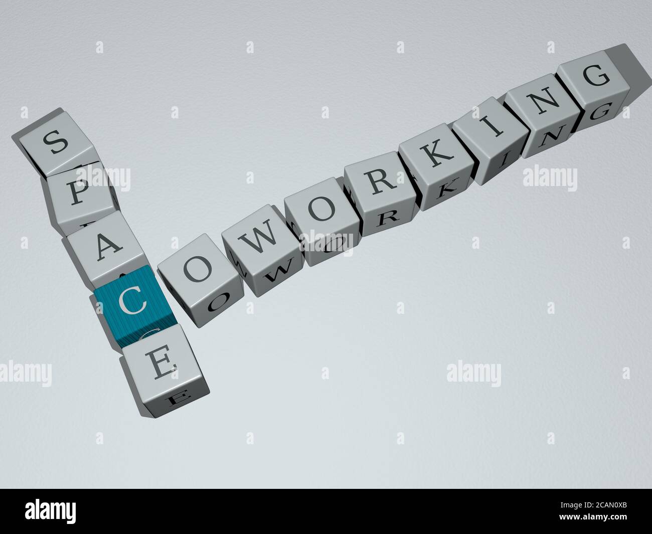 coworking space crossword by cubic dice letters 3D illustration for