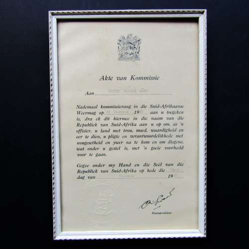 Other War Memorabilia 1962 SADF Akte van Kommissie Officers