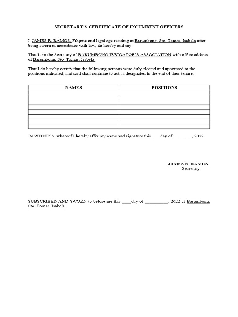 Secretary #39 s Certificate of Incumbent Officers PDF