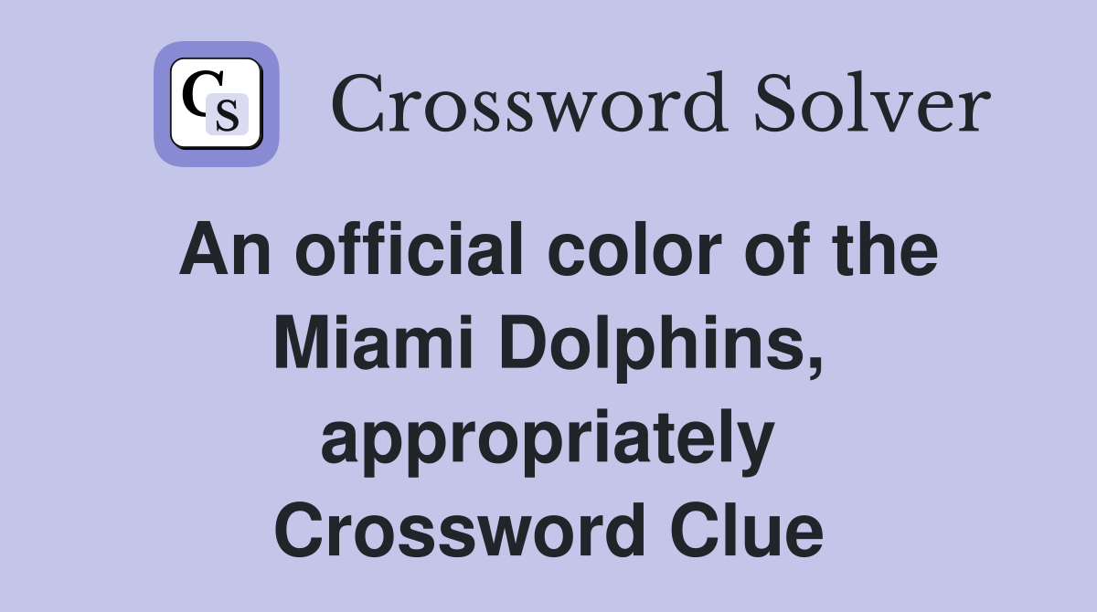 An official color of the Miami Dolphins appropriately Crossword Clue