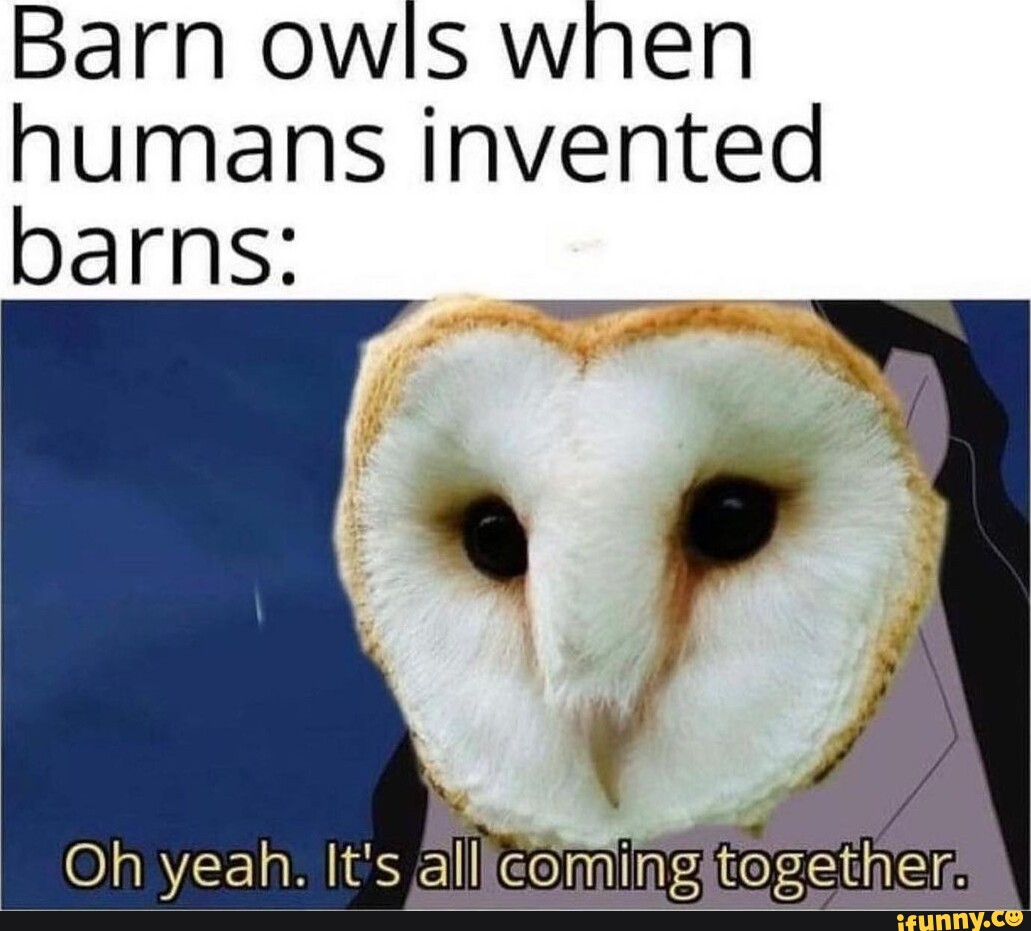 Barn owls when humans invented barns: Oh yeah It #39 s all coming together