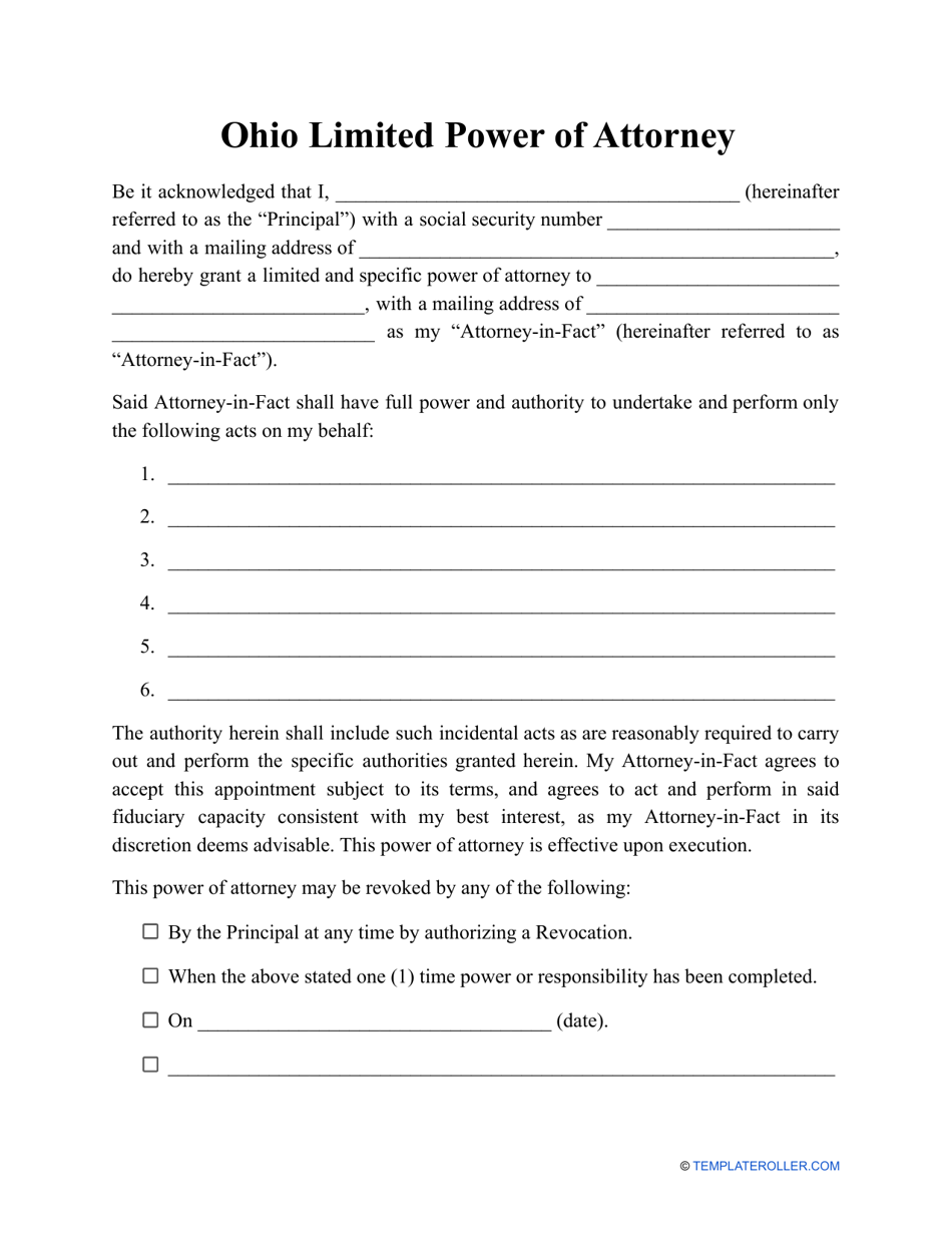 Ohio Limited Power of Attorney Template Fill Out Sign Online and