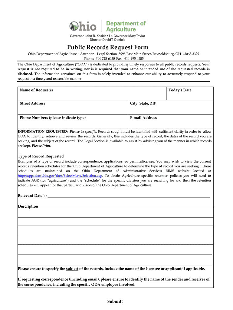 Fillable Online agri ohio Public Records Request Form agri ohio gov