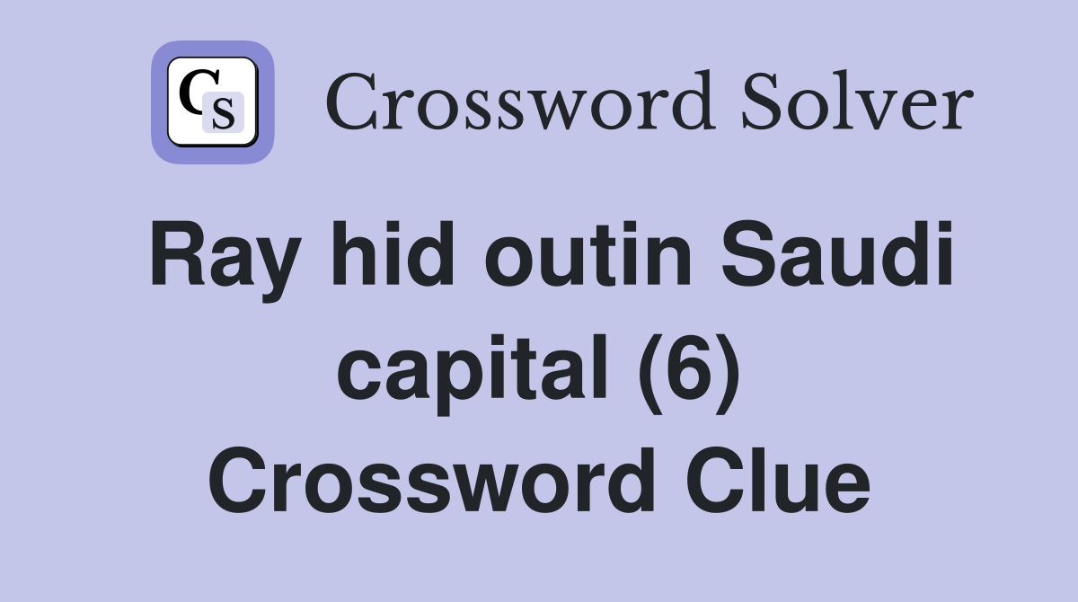 Ray hid outin Saudi capital (6) Crossword Clue Answers Crossword Solver