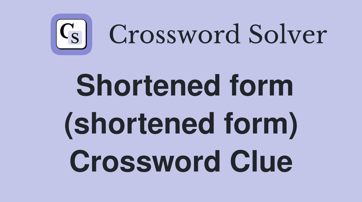 Shortened form (shortened form) Crossword Clue Answers Crossword Solver