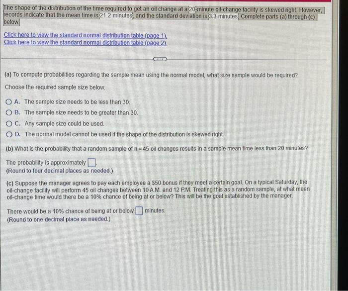 Solved The shape of the distribution of the time required to Chegg com