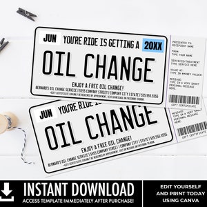 Oil Change Gift Certificate License Plate Surprise Gift Etsy