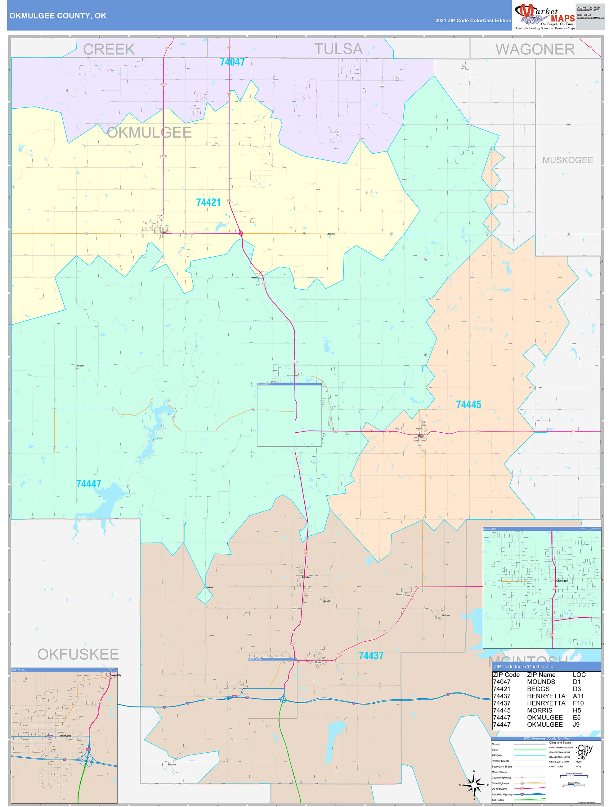 Okmulgee County OK Wall Map Color Cast Style by MarketMAPS MapSales com