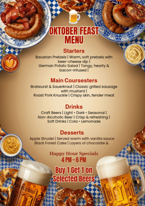 Maximalist Oktoberfest Food Menu A5 Template PosterMyWall