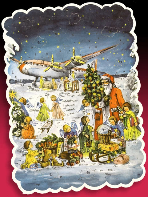 OLD ADVENT CALENDAR Nikolaus Comes In Lockheed Constellation 1950S