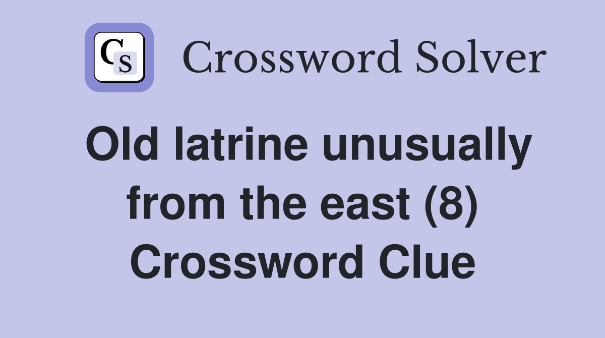 Old latrine unusually from the east (8) Crossword Clue Answers