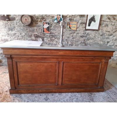 Proantic: Old Bar Counter Circa 1910 Oak And Zinc