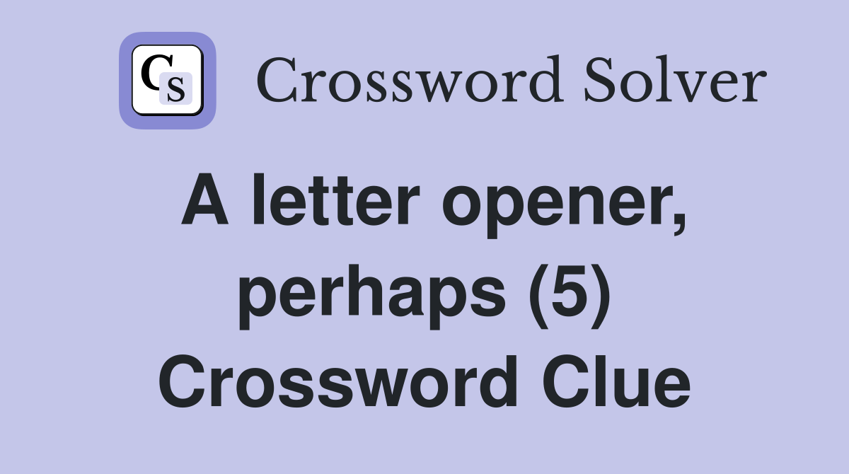A letter opener perhaps (5) Crossword Clue Answers Crossword Solver