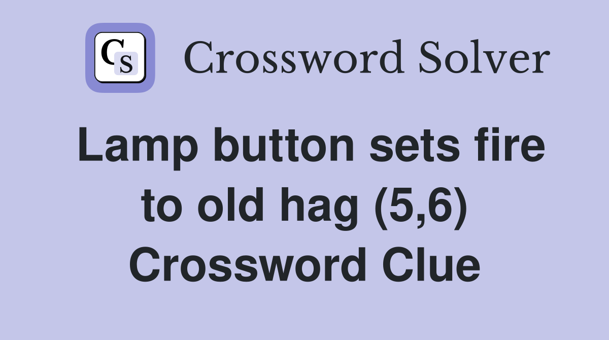 Lamp button sets fire to old hag (5 6) Crossword Clue Answers