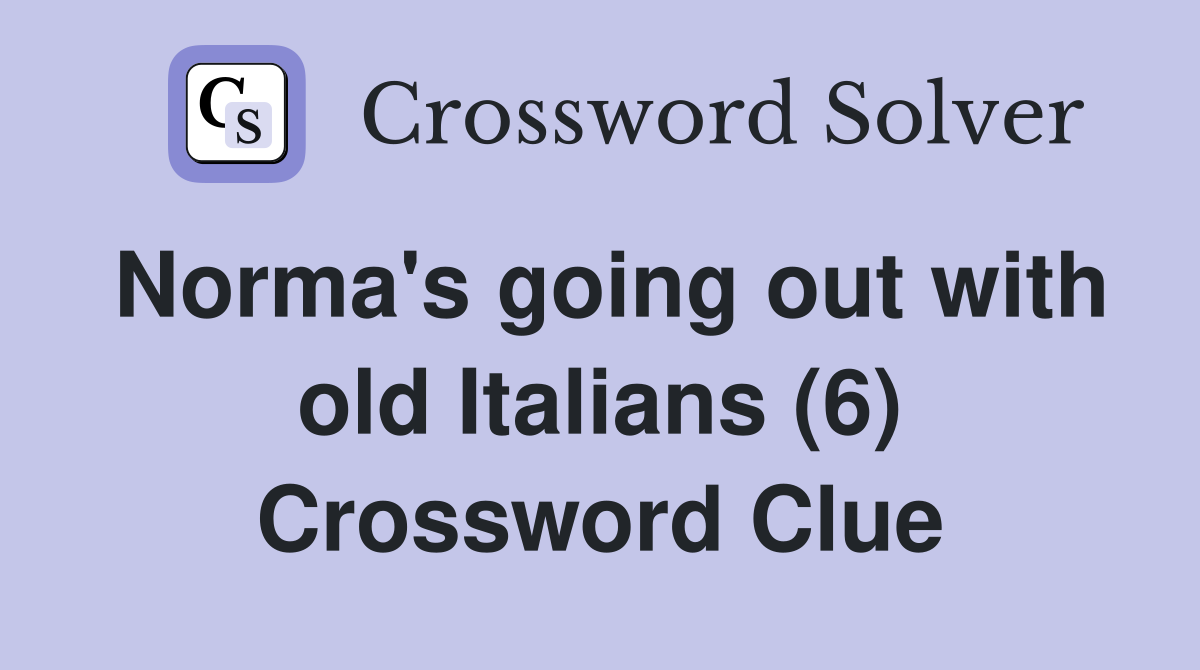 Norma #39 s going out with old Italians (6) Crossword Clue Answers