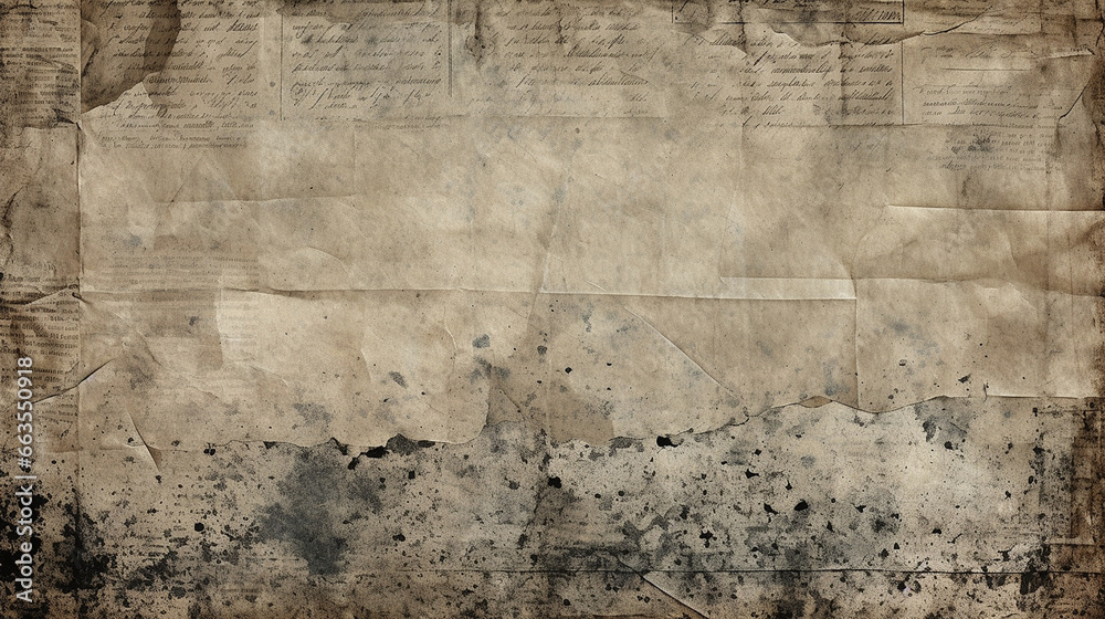 SCRATCHED PAPER TEXTURE OLD NEWSPAPER BACKGROUND generative AI Stock