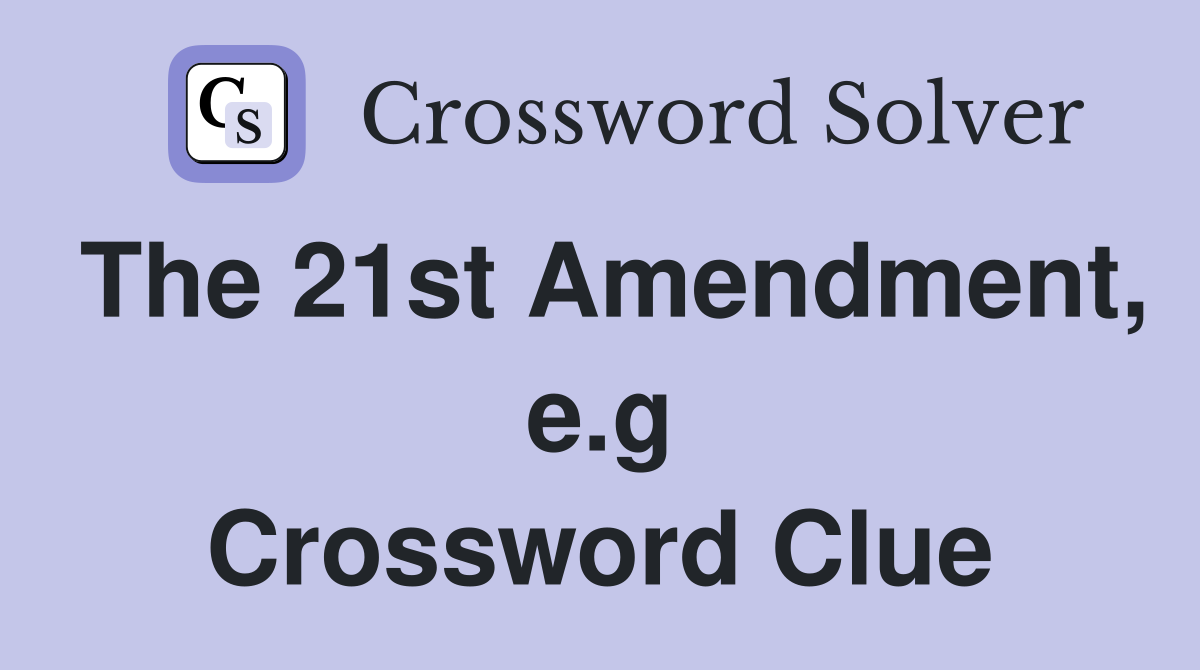 The 21st Amendment e g Crossword Clue Answers Crossword Solver