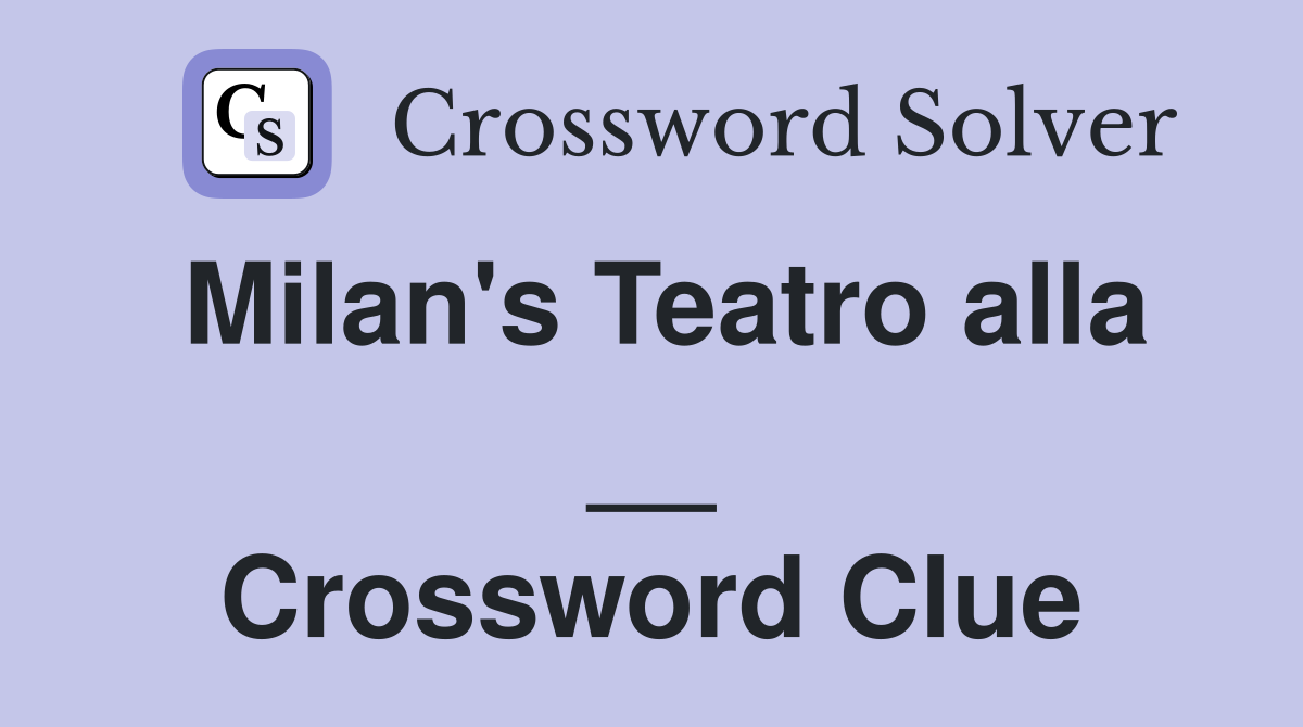 Milan #39 s Teatro alla Crossword Clue Answers Crossword Solver