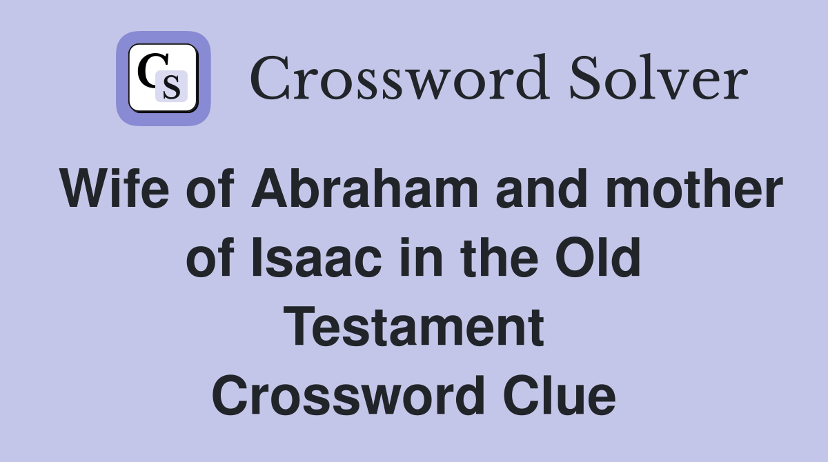 Wife of Abraham and mother of Isaac in the Old Testament Crossword