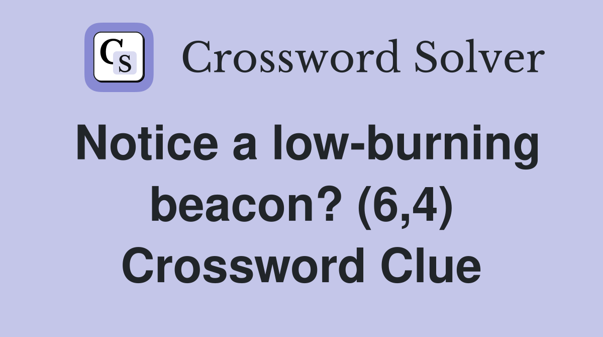 Notice a low burning beacon? (6 4) Crossword Clue Answers Crossword