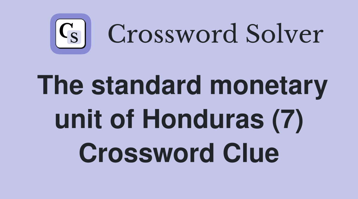 The standard monetary unit of Honduras (7) Crossword Clue Answers
