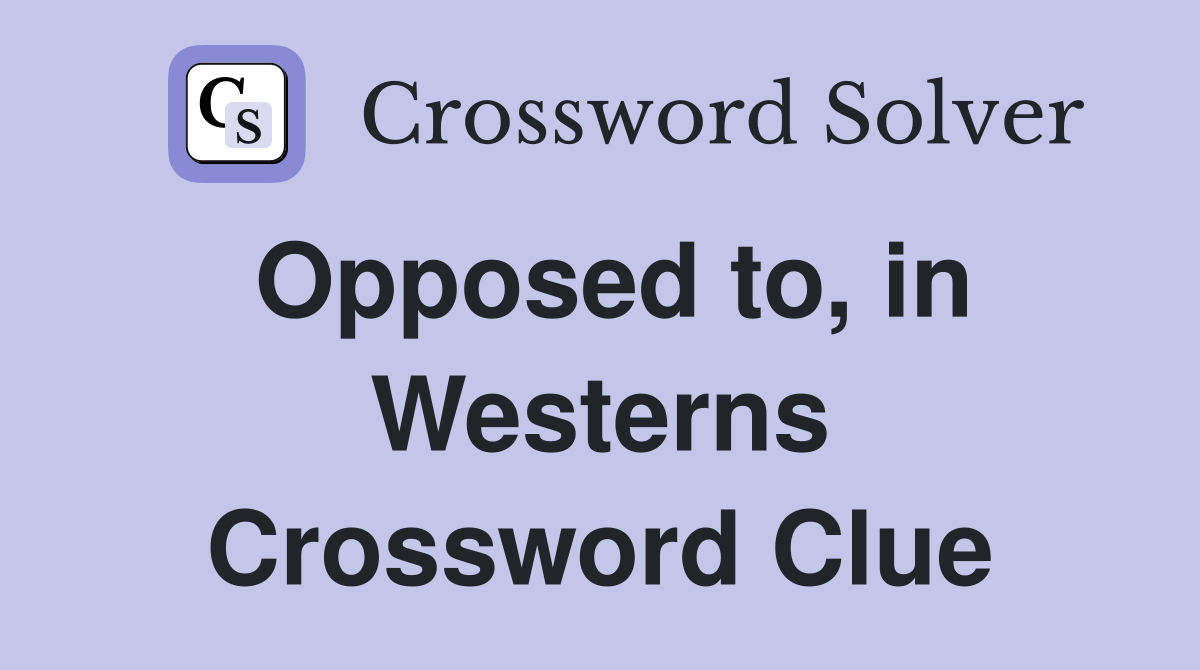 Opposed to in Westerns Crossword Clue Answers Crossword Solver